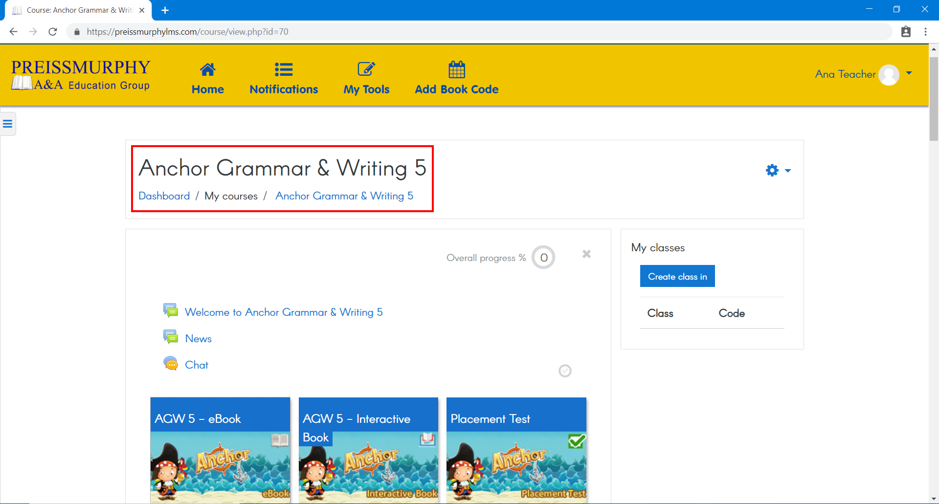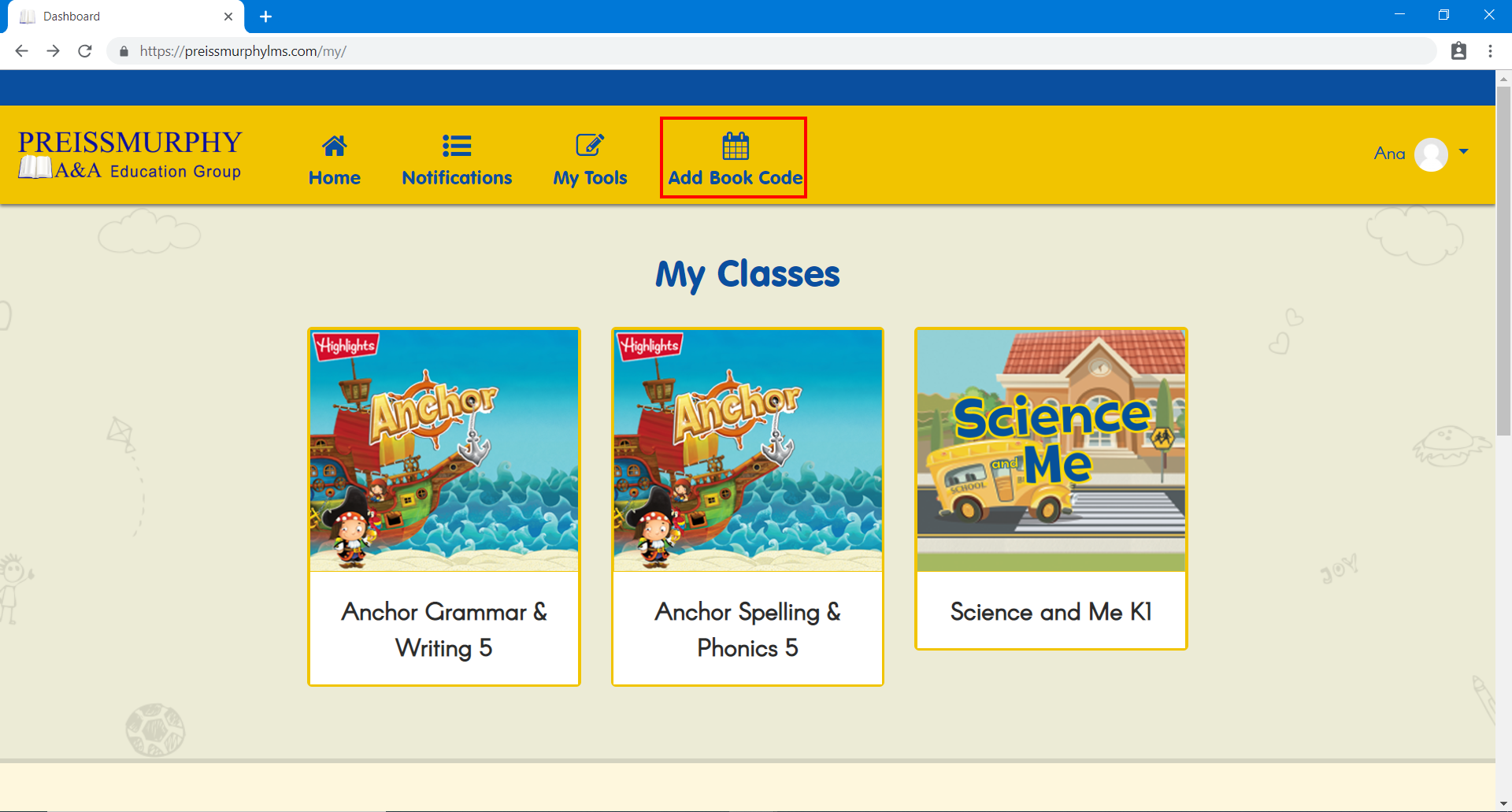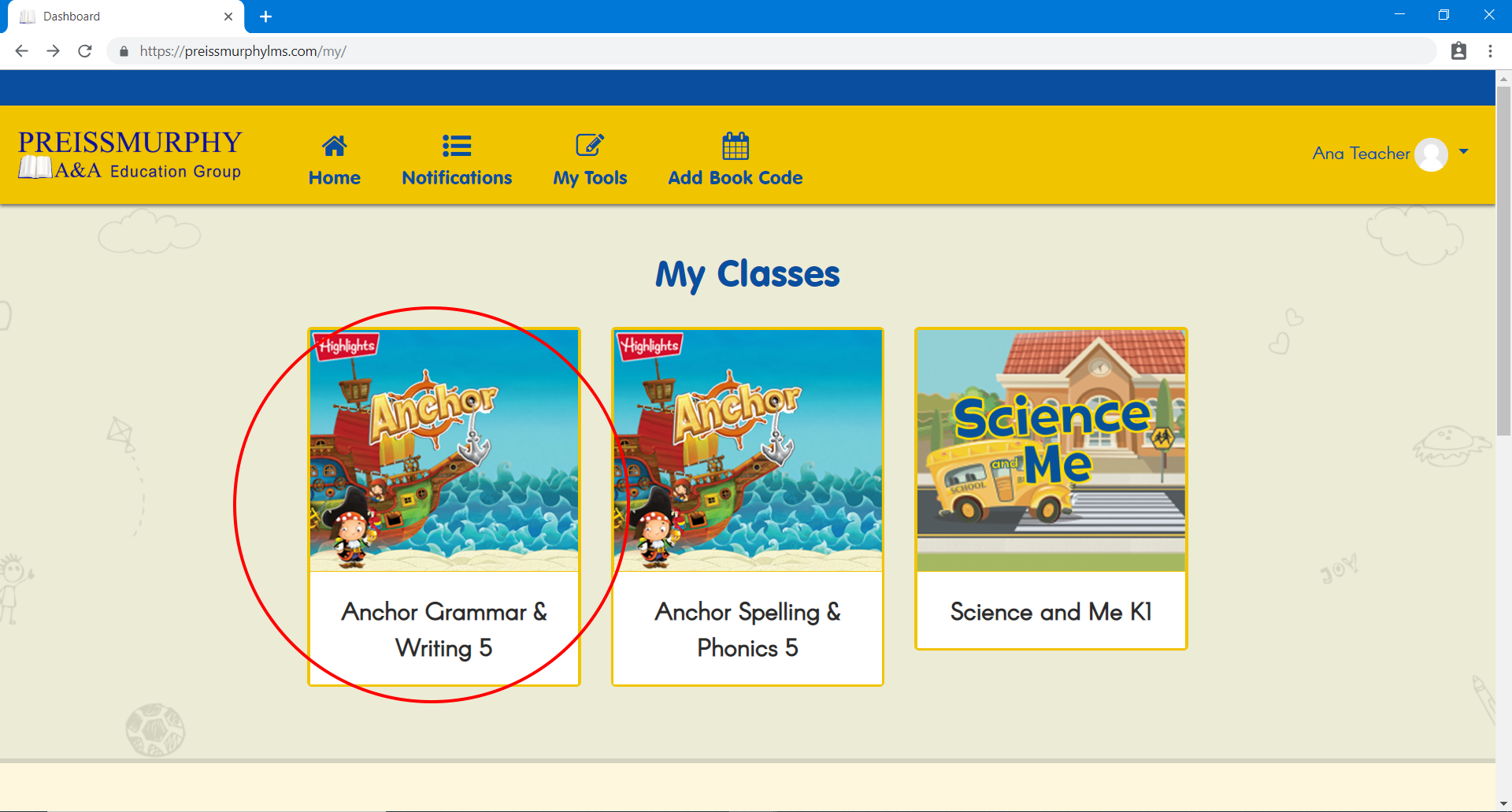 4. Your new book will be shown on your Dashboard, under My Classes.