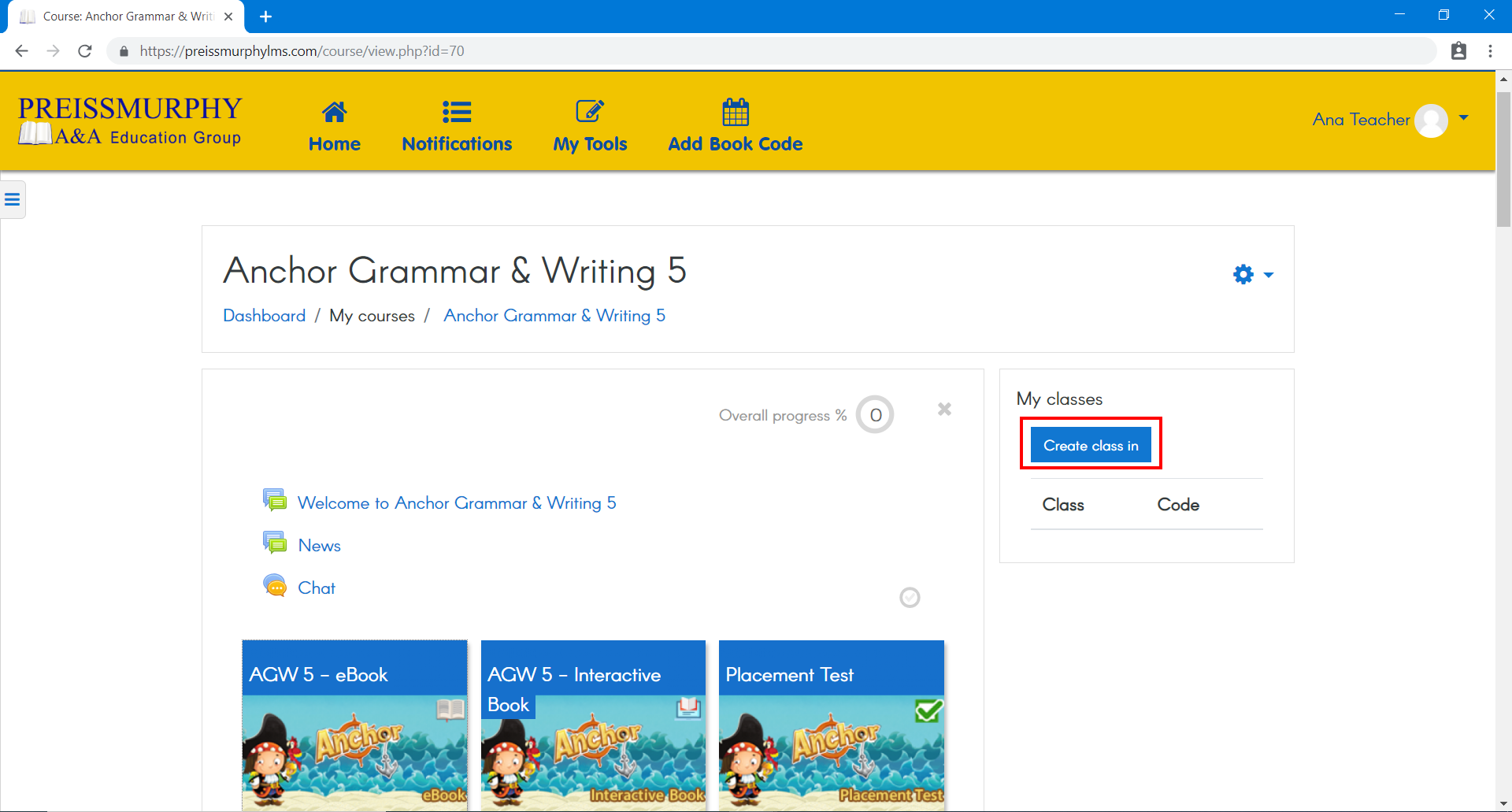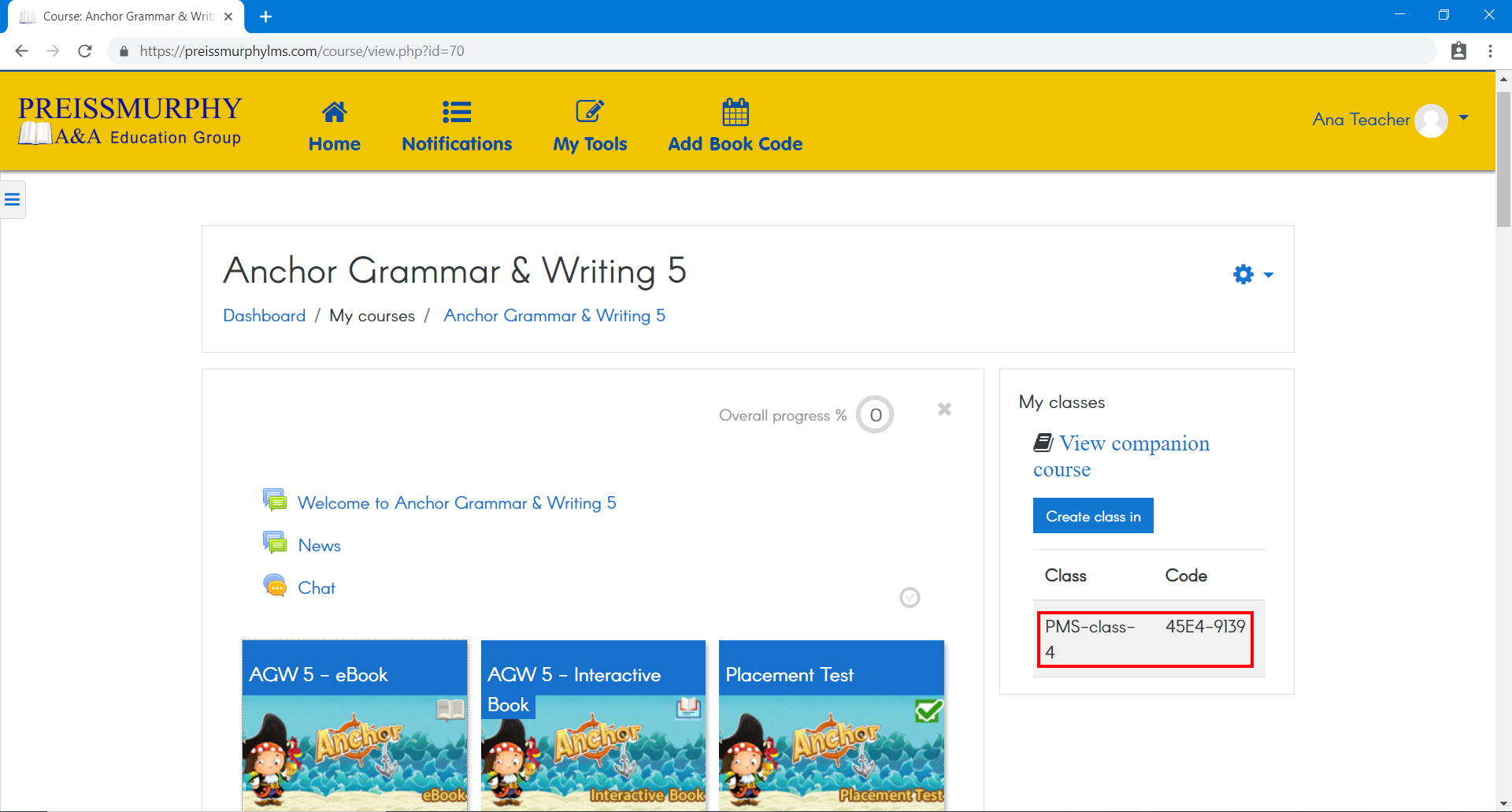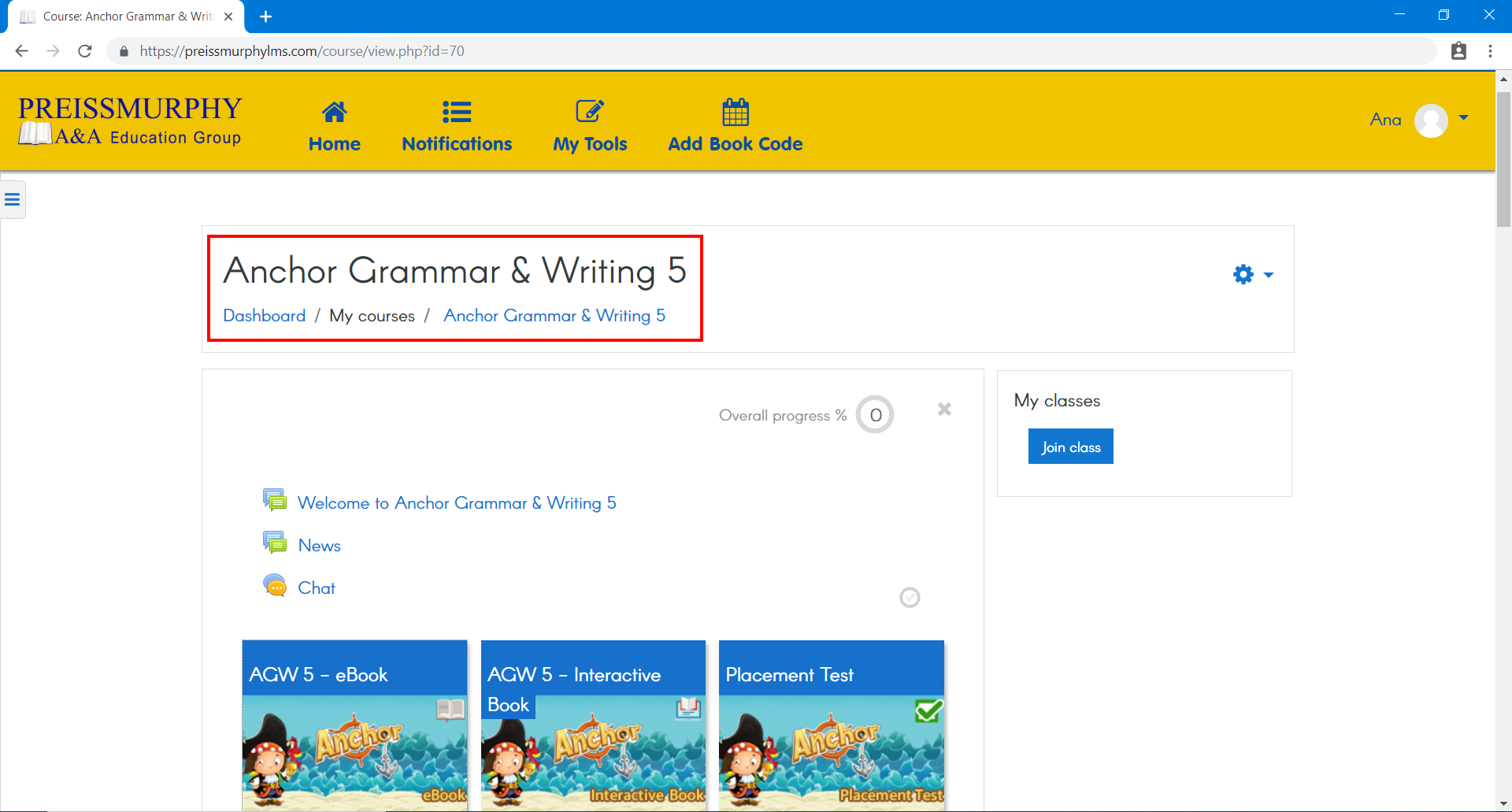 4. Your new book will be shown on your Dashboard, under My Classes.