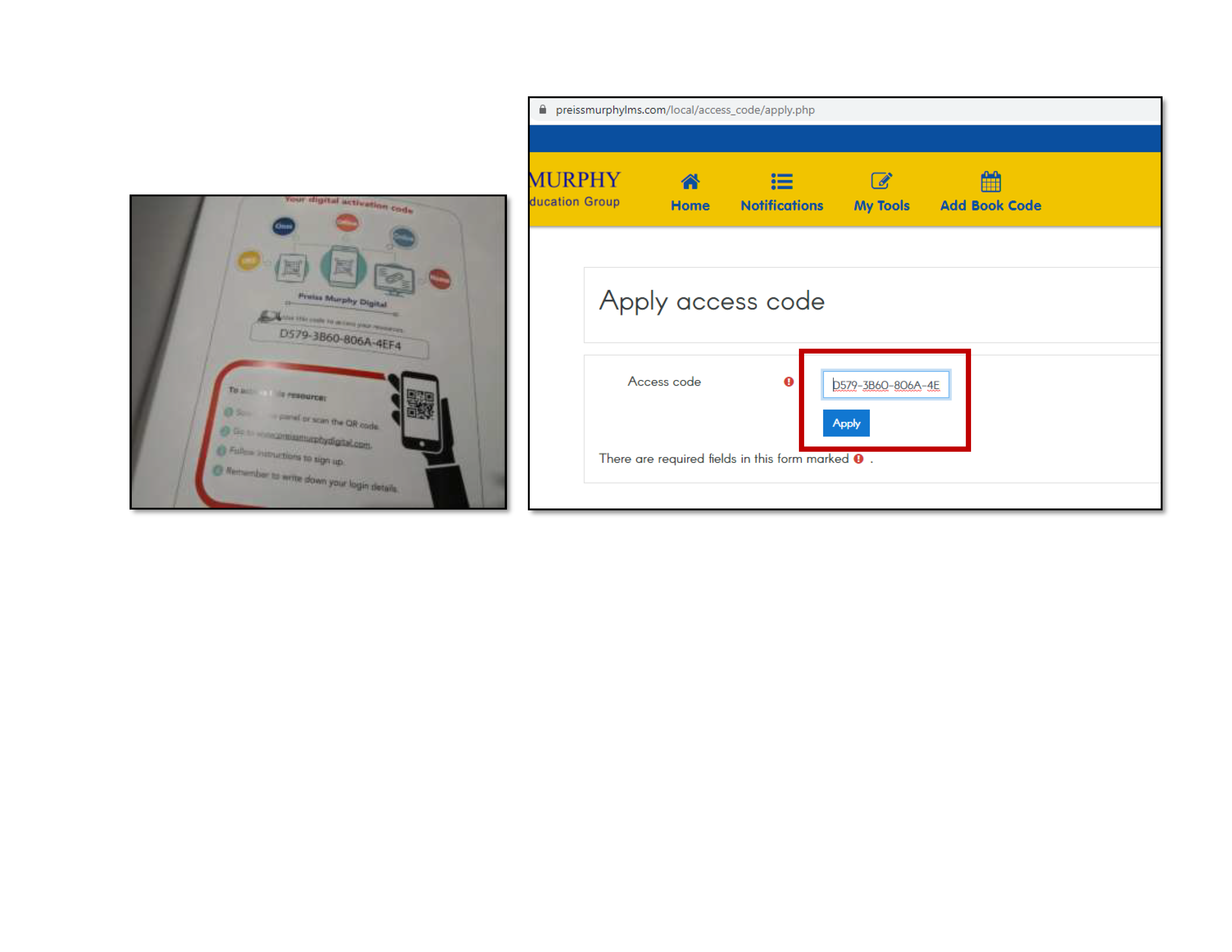 3. Type in the access code printed at the back of your book. Click on Apply.