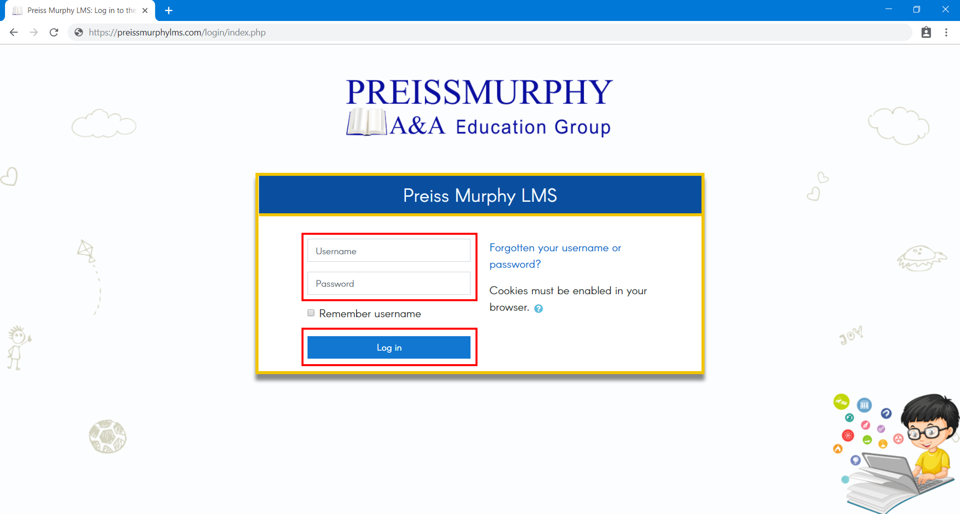 Please contact the LMS support at customercare@preissmurphydigital.com.