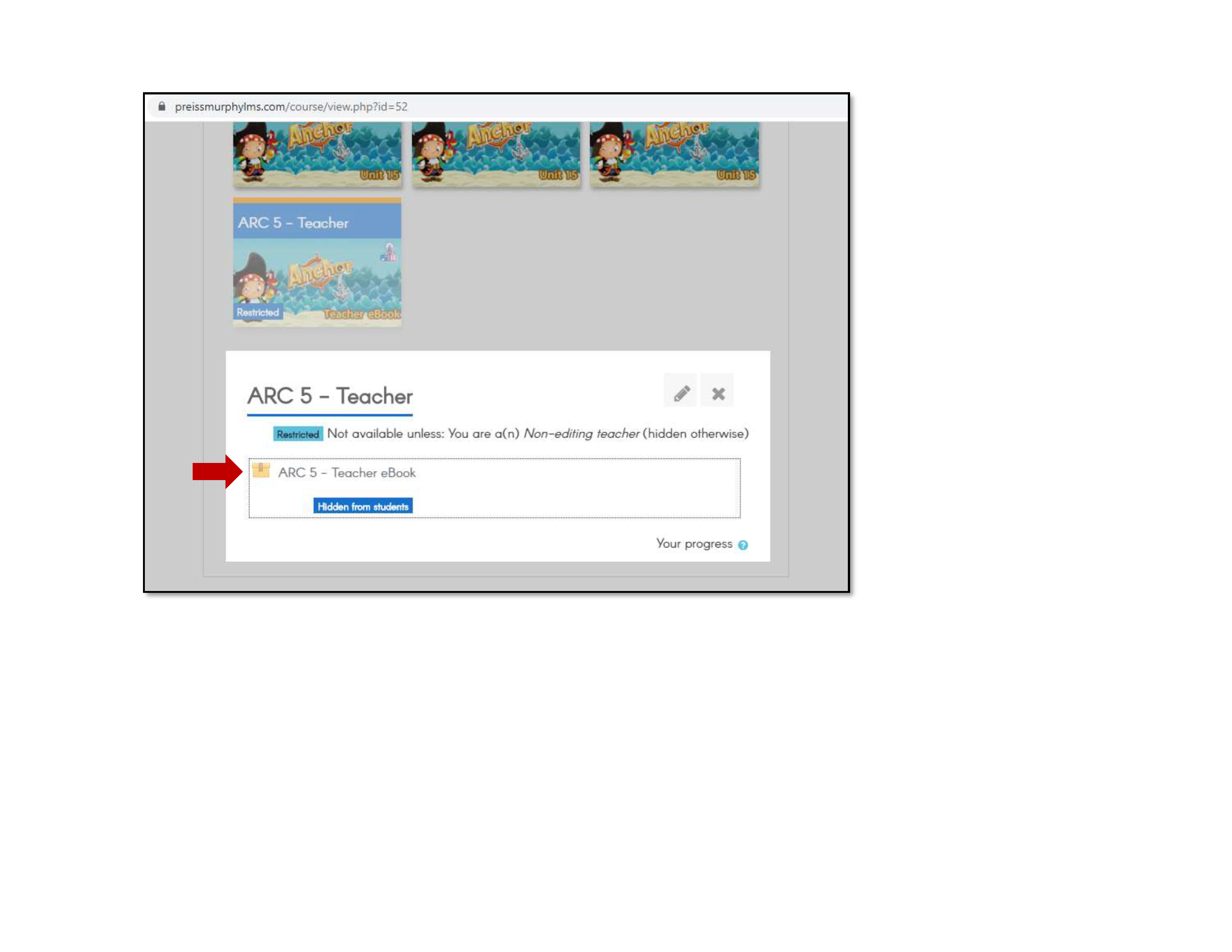 - The first row shows the eBook, the Interactive Book, and a third tile with extra content for the course.